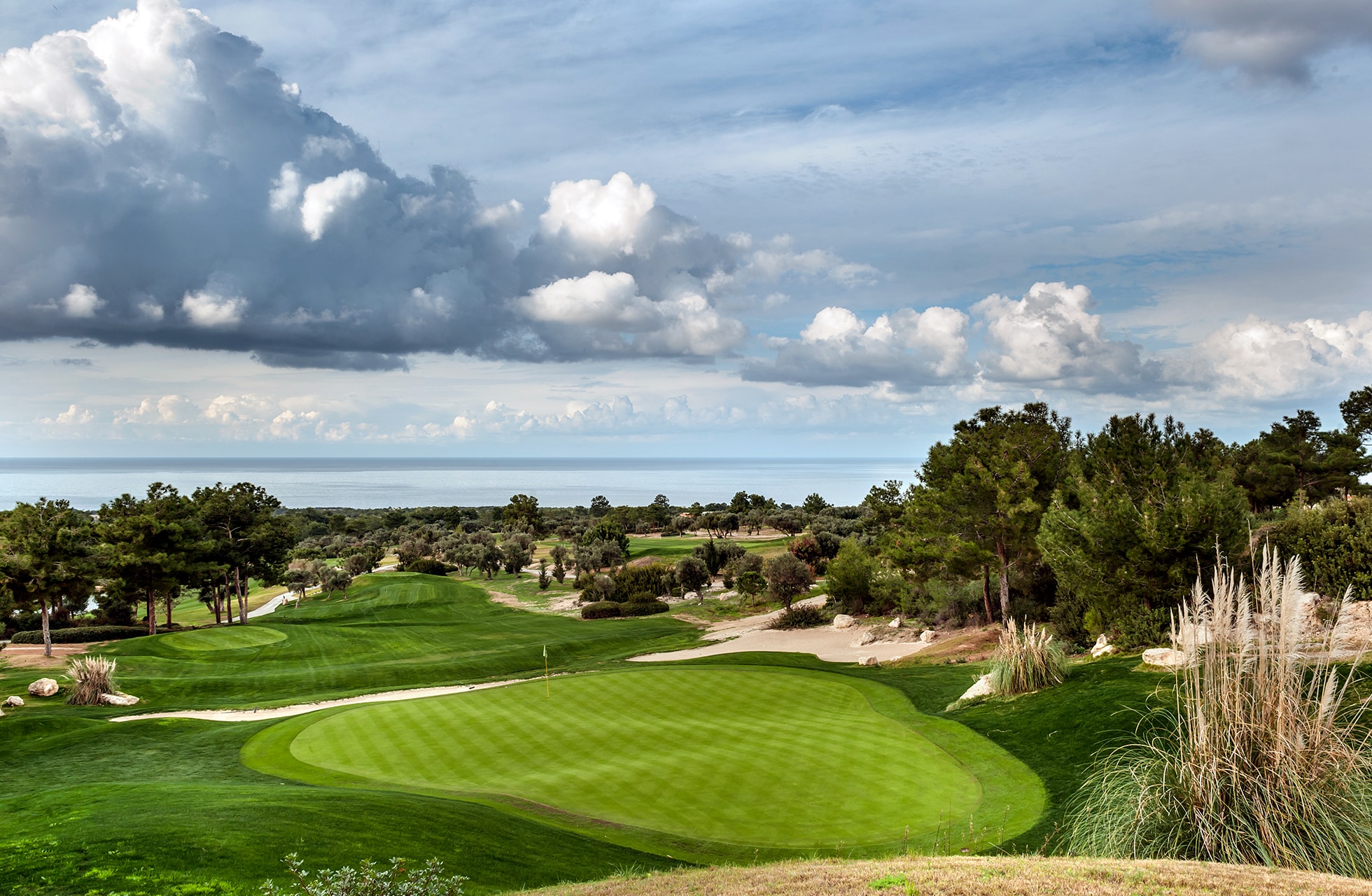 Vi vender tilbake til den gresk-kypriotiske siden, der majoriteten av Kypros’ golfbaner ligger. Den mest kjente av disse er Aphrodite Hills, som to ganger har vært vert for DP World Tour. Under tourens besøk ble hull 3 en skikkelig snakkis hvor man fra backtee måtte maksimere driveren for å komme over en enorm ravine. Da ble hullet spilt til hele 575 meter, men heldigvis er det betydelig snillere fra klubbtee fra andre siden av ravinen. Ellers er det hull 8 som er signaturhullet hvor man fra tee får følelsen av at greenen ligger på kanten mot det asurblå Middelhavet. Det er et golfhull man vil huske for resten av livet, uansett resultat. På Aphrodite Hills finnes en rekke spektakulære hull, men også mer tradisjonelle parkanlegg-lignende hull, noe som skaper en harmonisk blanding som passer både amatører og proffer. Avslutningshullet har en av banens få vannhindre – en dam nær greenen, retfullt nært blikkene fra klubbhusets trivelige uteservering.