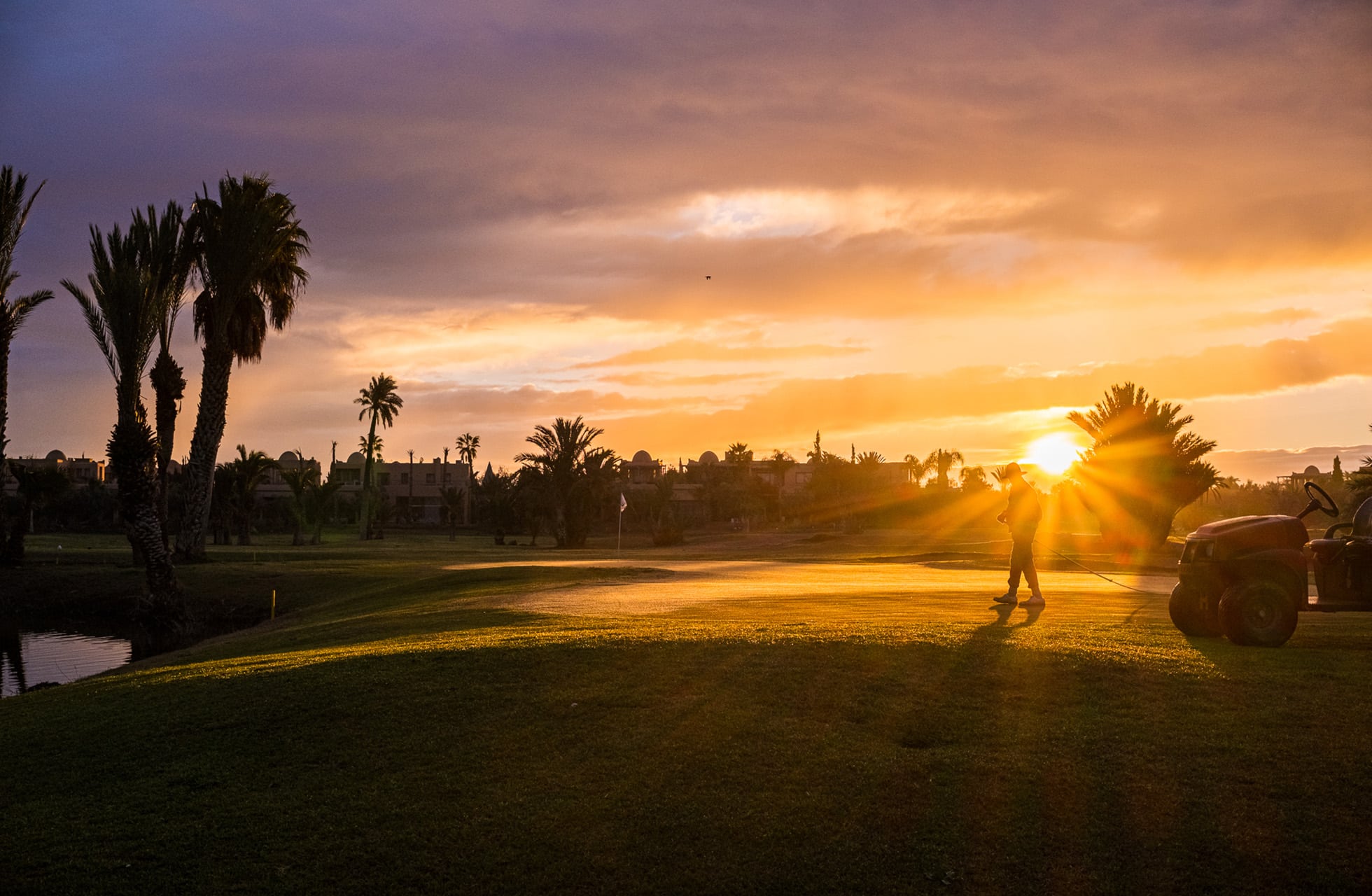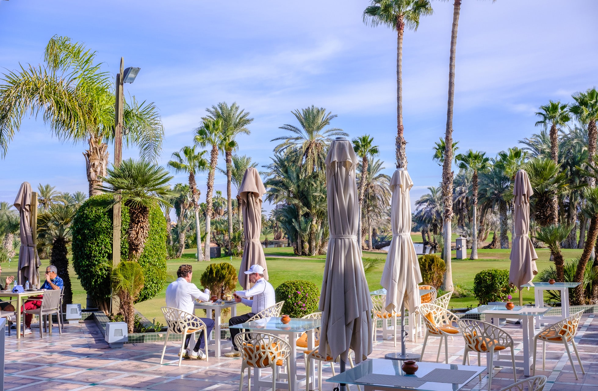 Det som overrasket mest, var variasjonen: noen hull spilles åpent med utsikt mot Atlasfjellene, mens andre er mer tekniske med vann i spill. Noe som er slående, er at du mer eller mindre alltid er i spill, selv om det av og til står en palme i veien. Det er lett å like Palmeraies golfbane.